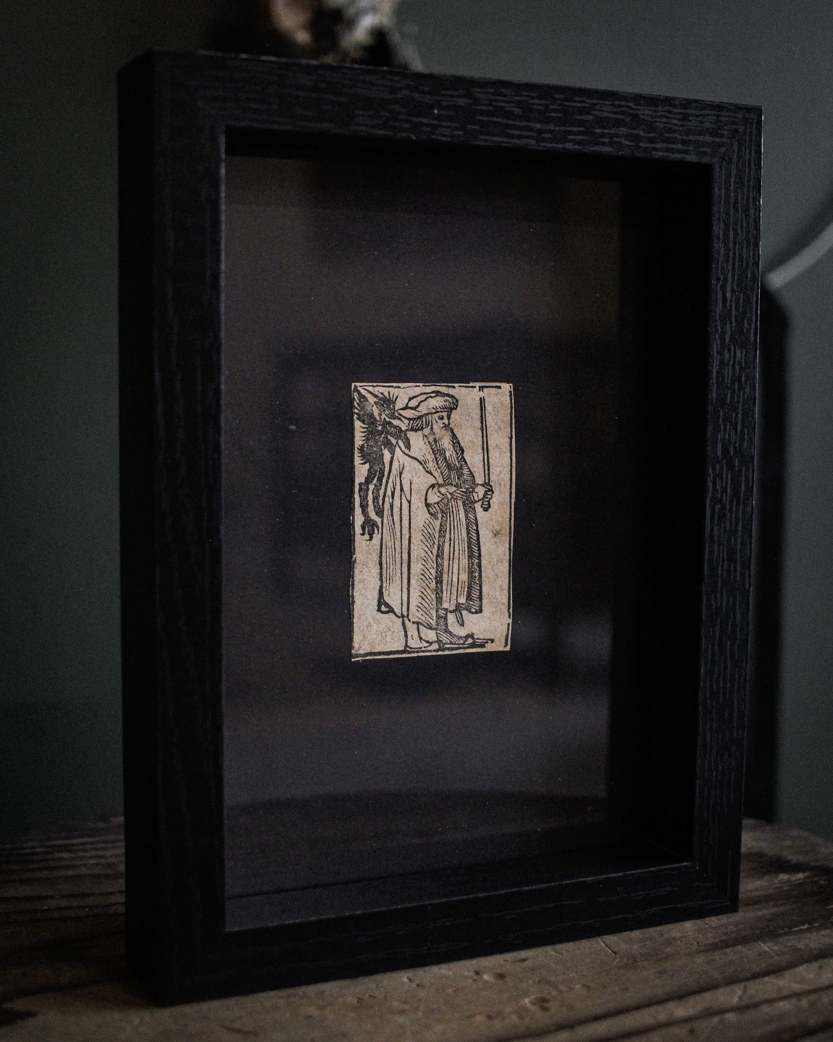 Wizard with Wand, Demon on his Back Woodblock Print, 1550, Germany