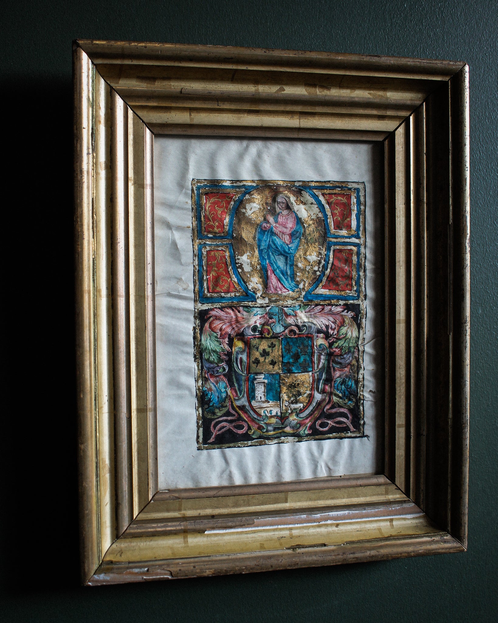 Late 16th Century Mary and Heraldic Coat Painted Manuscript on Vellum