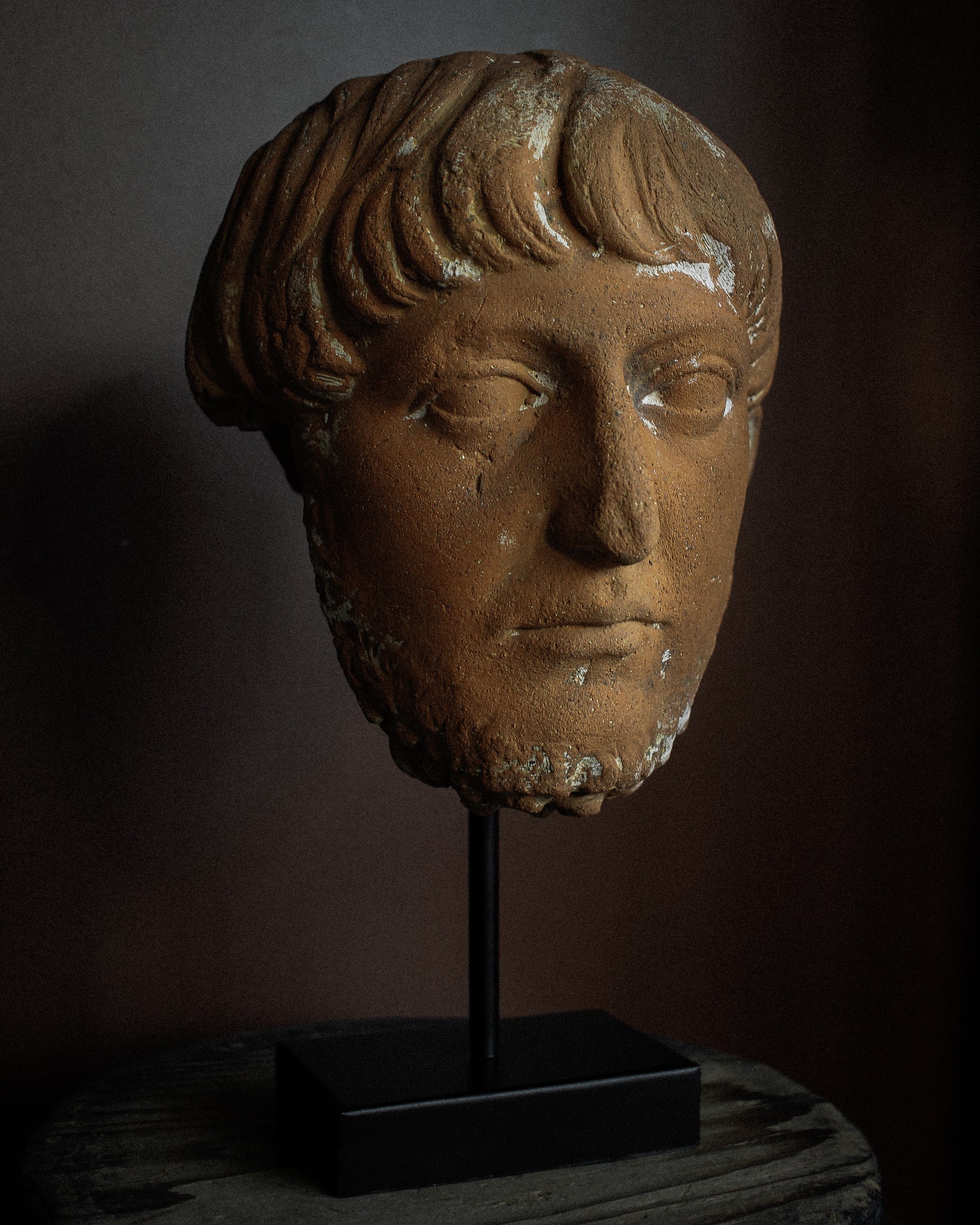 Roman Life Size Terracotta Head of Hadrian on Stand