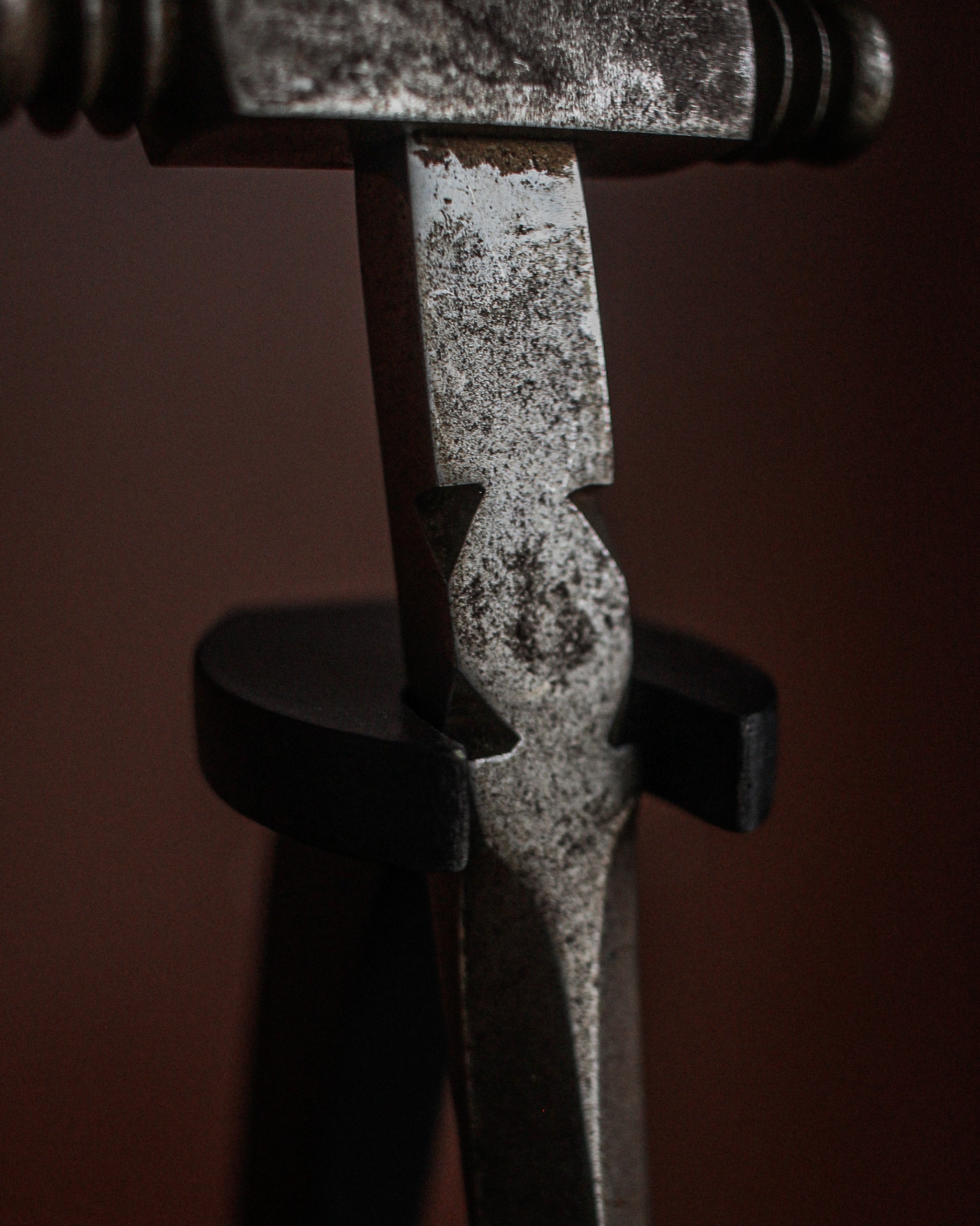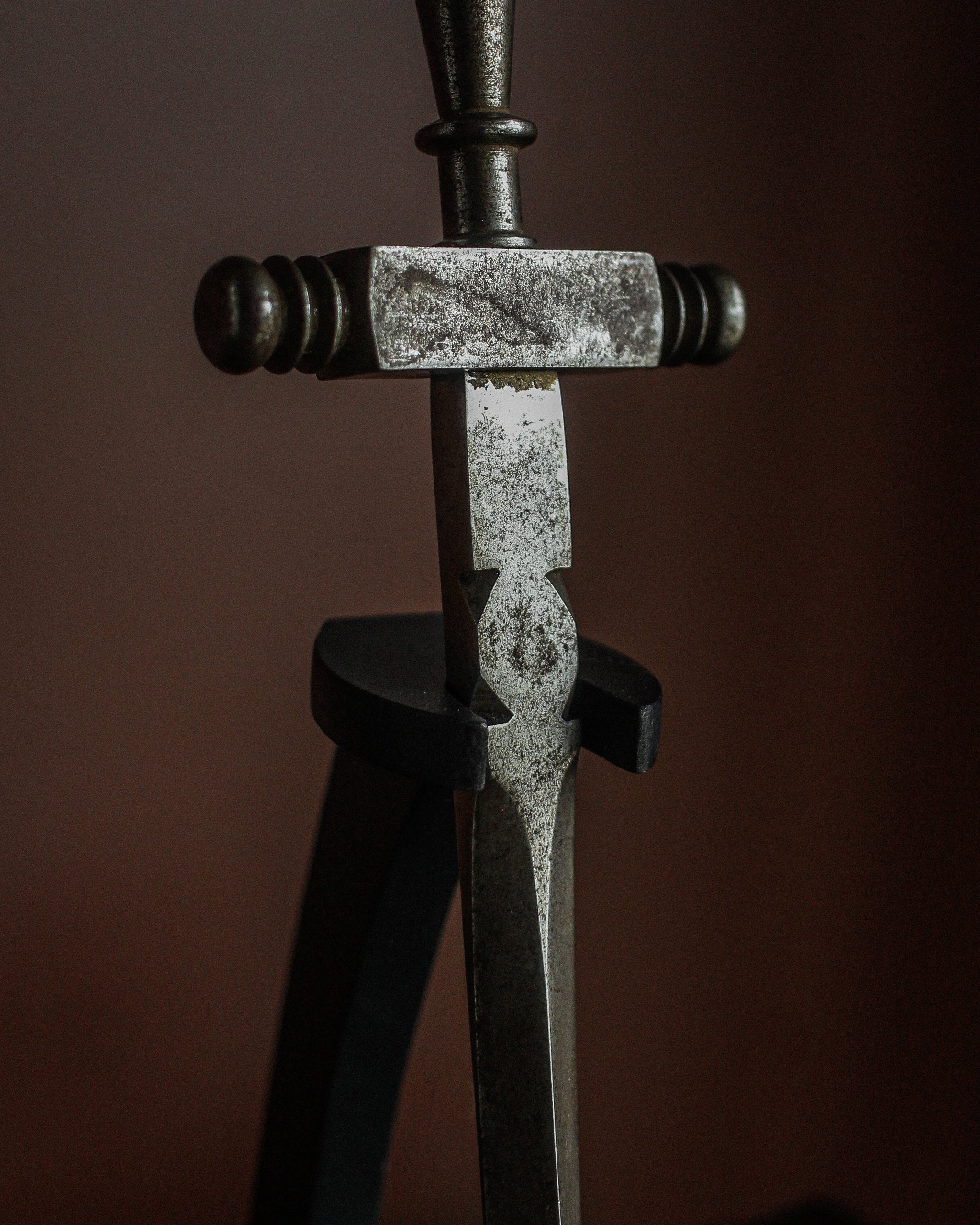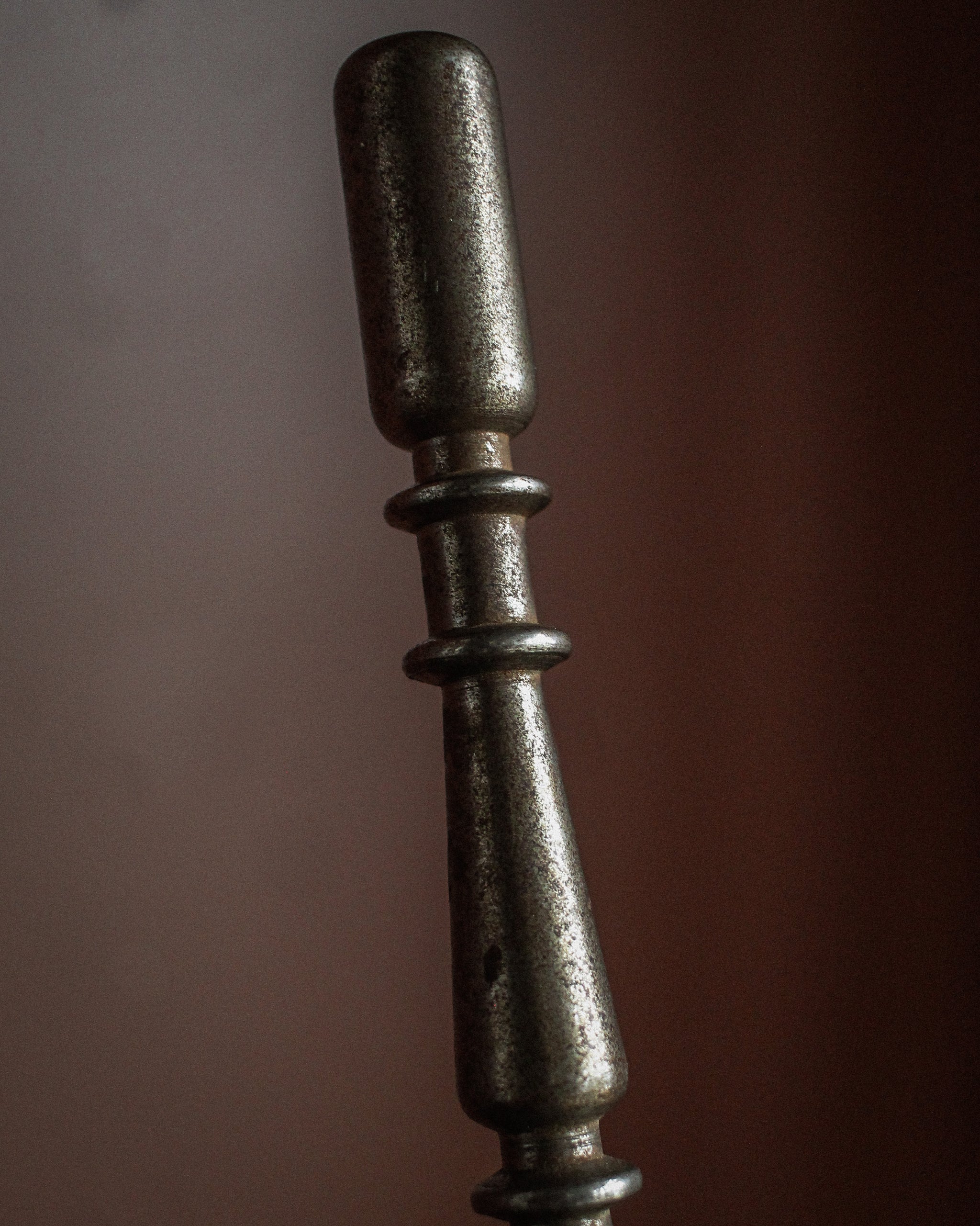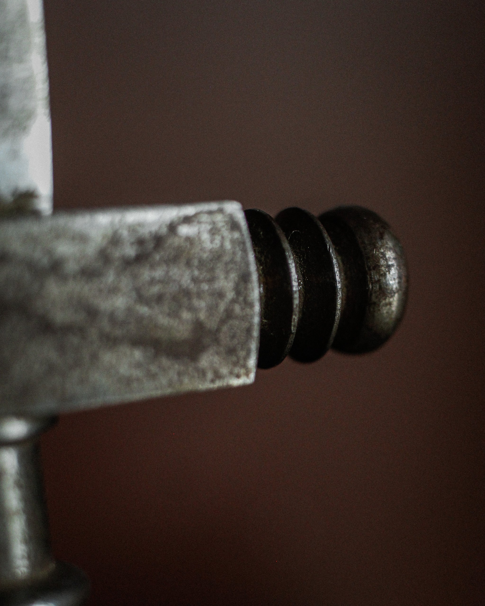 Incredible mid 17th century Italian renaissance iron stiletto dagger featuring distinctive slim triangular blade, designed to pierce armour and clothing, making the style extremely popular with knights as a misericorde or mercy weapon. These weapons became iconic in the late 15th century in Northern Italy for both combat and fashion. The hilt of this stiletto dagger features beautiful fragmented sections, and fits so perfectly in hand. Likely made for an artillery officer, circa 1660, northern Italy. Displayed on contemporary stand.