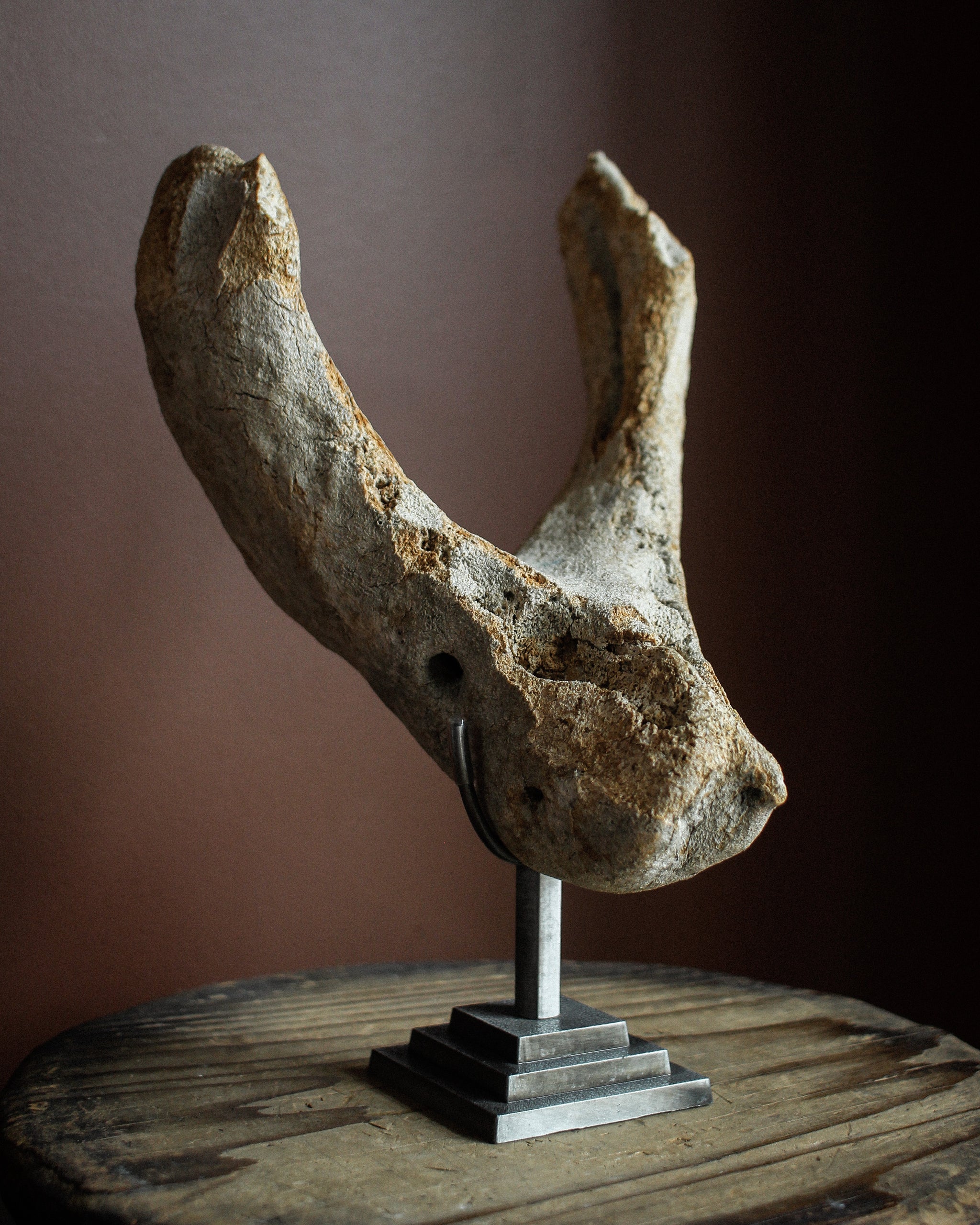 Beautiful fossilized jawbone of a walrus, from the last ice age, 20,000 years ago. Incredible sculptural form with even better patina. Found in Alaska.
