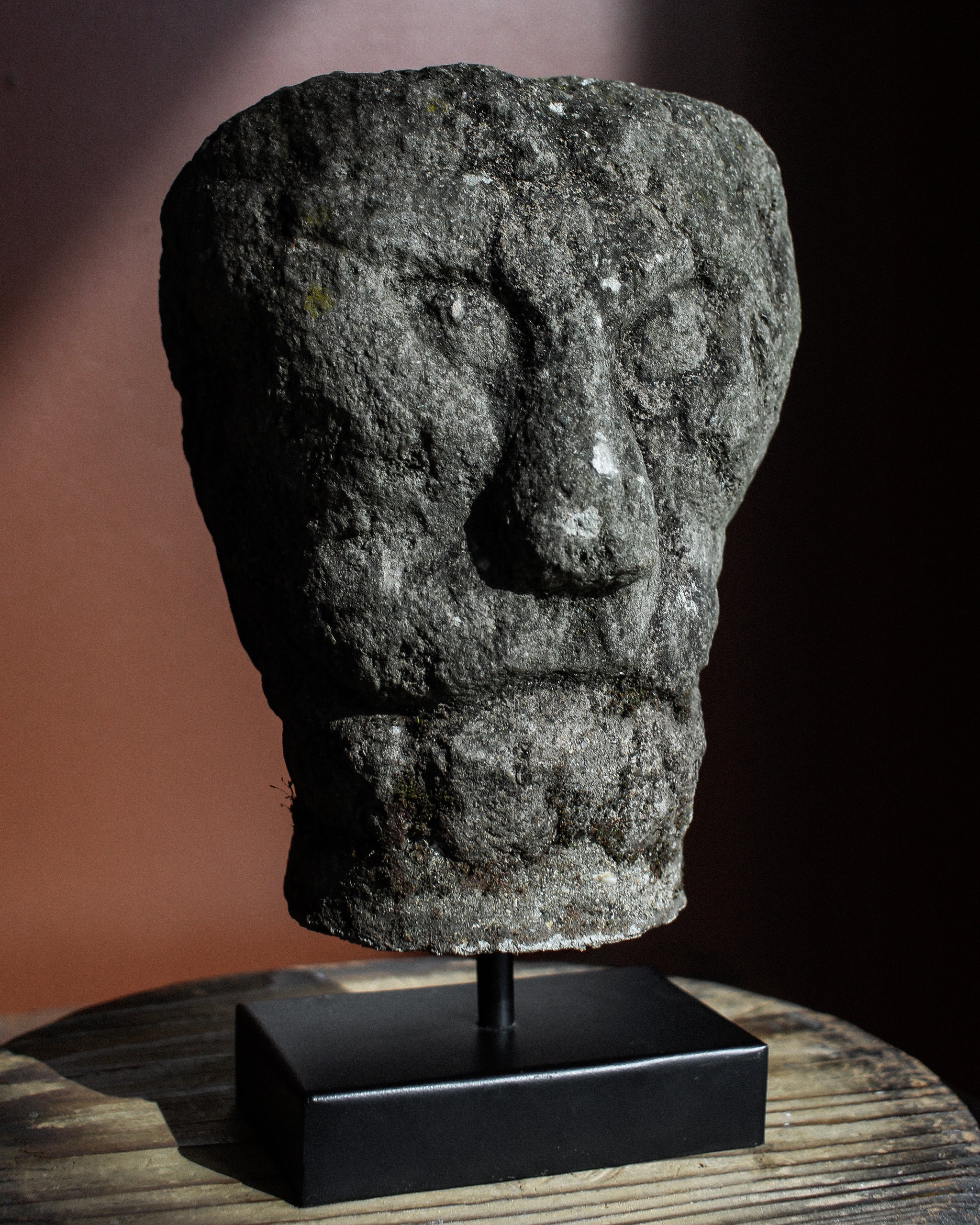 Late Romanesque Tuscan Stone Head of Lion Man on Stand